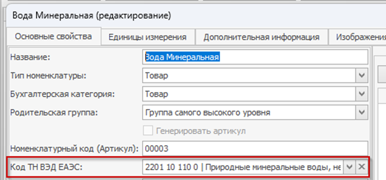 В карточке товара или блюда укажите соответствующий код ТН ВЭД.
