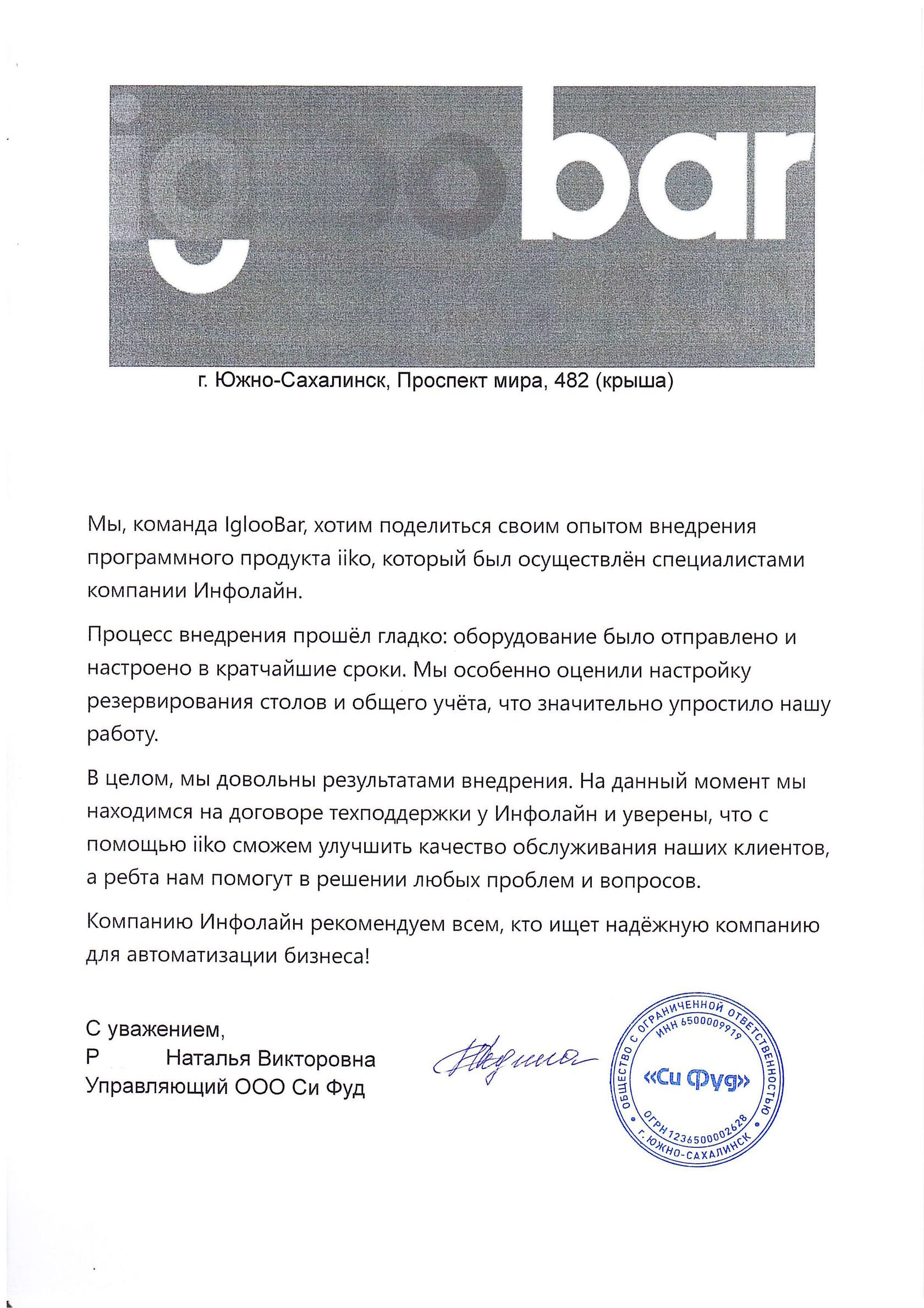 Мы, команда IglooBar, хотим поделиться своим опытом внедрения программного продукта ilko, который был реализован специалистами компании Инфолайн.